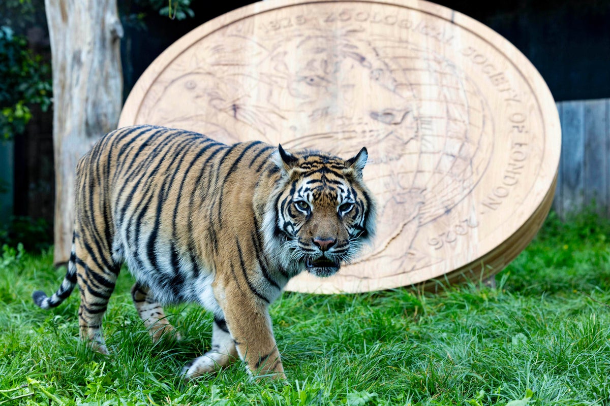 The coin was officially launched at ZSL’s London Zoo, where a giant wooden replica of the coin measuring two metres (6.5ft) in size was given to the conservation zoo’s Sumatran tigers for their “roar” of approval.