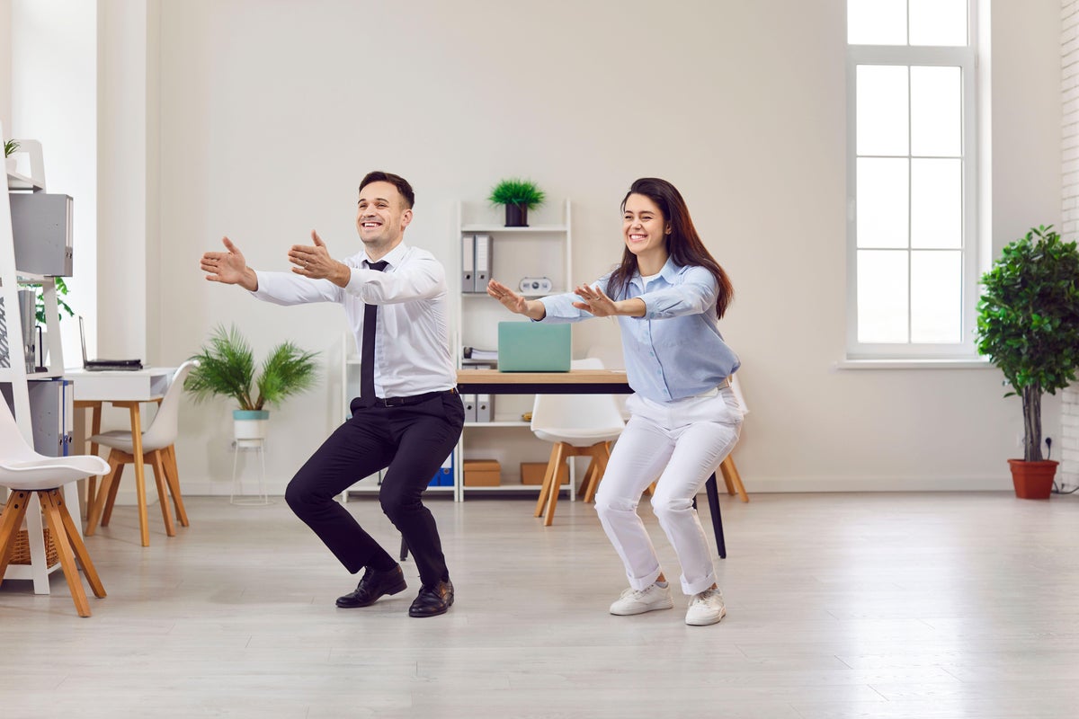 In an office environment, where overt exercise might feel awkward, he suggests more subtle approaches: “Grab yourself a coffee, go for a walk and maybe stretch out your thighs or do some more subtle exercises instead.”